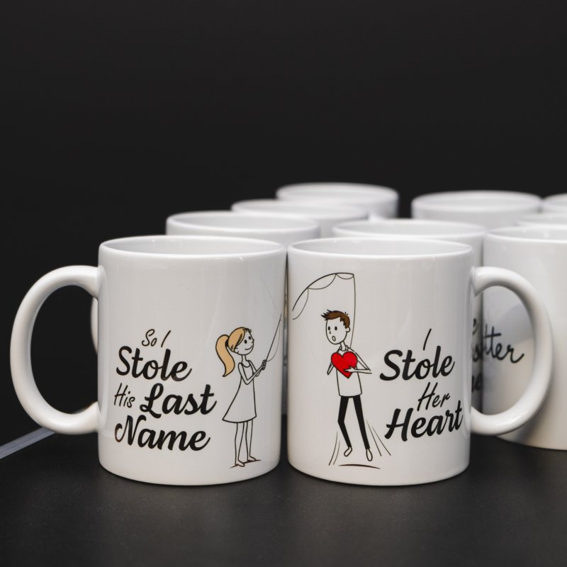 Set od dvije šalice idealne za zaručnike ili novopečene bračne parove.