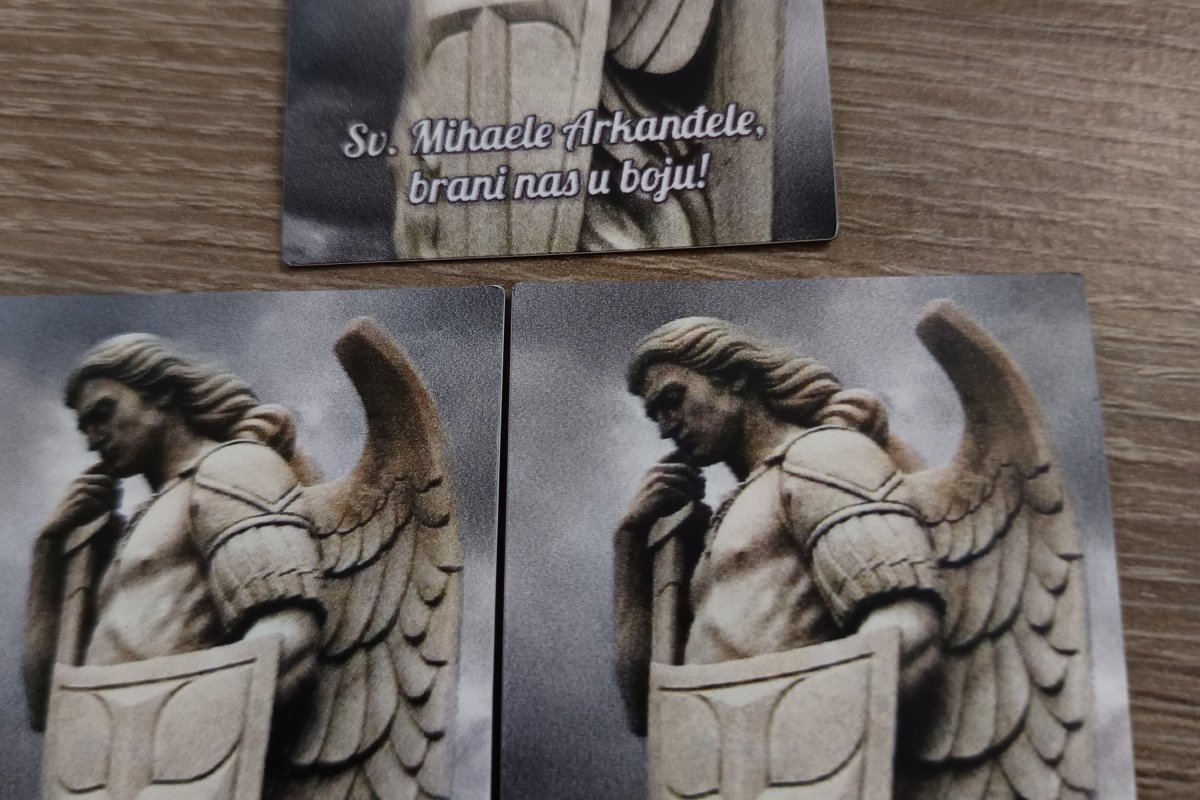 Magnetić s likom sv. Mihaela Arkanđela veličine 7 x 5 cm.